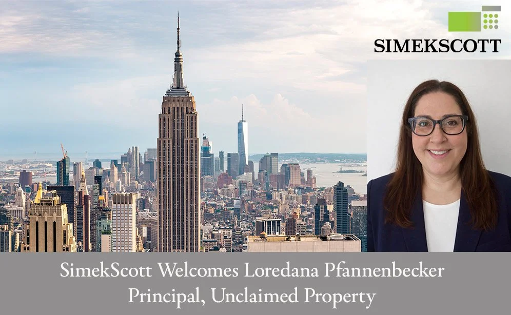 SimekScott is excited to welcome Loredana Pfannenbecker as a Principal in our Unclaimed Property practice. With 27+ years of experience—including serving as New York Metro Unclaimed Property Regional Leader at an international public accounting firm—Loredana brings deep expertise in retail unclaimed property and gift card planning to strengthen our SALT team.